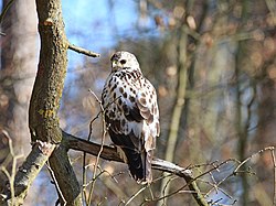 Der Mäusebussard (Buteo buteo) ist ein Greifvogel aus der Familie der Habichtartigen und der häufigste Vertreter dieser Familie in Mitteleuropa. Er ist mittelgroß und kompakt, das Gefieder variiert von Dunkelbraun bis fast Weiß. Er kann oft bei seinen kreisenden Segelflügen oder bei der Ansitzjagd beobachtet werden. Den Hauptteil der Nahrung machen Kleinsäuger aus. Lebensraum sind offene Landschaften wie Wiesen, Äcker und Heide mit angrenzenden Waldgebieten, in denen das Nest gebaut wird.