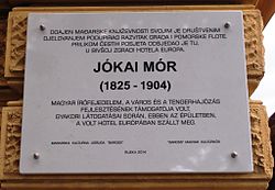 | Erinnerungstafel für den ungarischen Schriftsteller und Journalisten Mór Jókai (1825-1904) in Rijeka, Kroatien | Eigenes Werk | Evergreen68 | Datei:Jokai Mor Rijeka Kroatien a.jpg | |