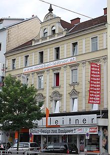 Das Wohn- und Geschäftshaus wurde 1906 durch Baumeister Franz Weinberger erbaut. Auftraggeber war Ferdinand Leitner. 1927 wurde das Tapezierergewerbe angemeldet. Es folgten die Anfertigung von Polstermöbeln, auch nach eigenen Entwürfen, sowie eine fabriksmäßige Erzeugung von Matratzen. Im Jahr 1930 das Gebäudes auf drei Geschoße aufgestockt, die Baumeister waren Wilhelm Fabigan und Carl Feichtinger. 1945 wurde das Betriebsgebäude durch einen Bombenangriff zerstört.