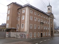 | Landeskrankenanstalten Salzburg (St.-Johanns-Spital), Innere Medizin II 1 /Landesapotheke, straßenseitig (Müllner Hauptstraße) | Eigenes Werk | Eweht | Datei:LKH Salzburg - Innere Medizin II - Landesapotheke.jpg | |
