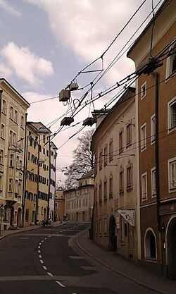 | Die Aiglhofstraße im Stadtteil Mülln, Salzburg. | Eigenes Werk | Aroner123 | Datei:Aiglhofstraße Mülln Salzburg.jpg | |