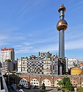 | Nordansicht des Verwaltungsgebäude der Fernwärme Wien (Wien Energie AG) an der Adresse Spittelauer Lände 45 in der Spittelau, ein Ortsteil im 9. Wiener Gemeindebezirk Alsergrund . Am 15. Mai 1987 brannte die Müllverbrennungsanlage ab. Im Zuge des Wiederaufbaues wurde der Künstler Friedensreich Hundertwasser um 88 Mio. Schilling beauftragt, die Fassade und den Schlot zu gestalten. | Eigenes Werk | C.Stadler/Bwag | Datei:Spittelau (Wien) - Fernwärme Wien, Verwaltungsgebäude (2).JPG | |