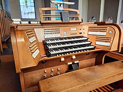| Der Spieltische der Orgel mit den 3 Manualen | Eigenes Werk | Clemens820 | Datei:Spieltisch der Orgel der Münzgrabenkirche.jpg |