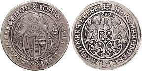 - ↑ Vgl. mcsearch.info: Kurfürst Johann Georg I., Kippertaler zu 60 Groschen 1622, Leipzig.