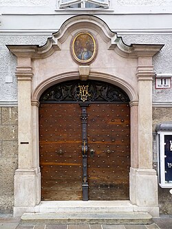 | Haus Alter Markt 11, Salzburg, Eingang; früheres Eingangsportal zum Städtischen Versatzamt am Makartplatz, 1906 auf den Alten Markt versetzt. | Selbst fotografiert | luckyprof | Datei:Alter Markt11 (früheres Eingangspirtal zum Städtischen Versatzamt).jpg | |