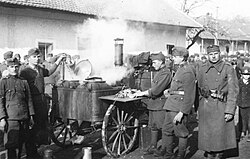 | Hungarian soldiers in Hungary or Slovakia? Tags: meal, goulash cannon, soldier | http://www.fortepan.hu/_photo/download/fortepan_43633.jpg Archivkopie in der Wayback Machine | FOTO:Fortepan — ID 28170 : Adományozó/Donor: Konok Tamás id. Archivkopie in der Wayback Machine | Datei:Meal, goulash cannon, soldier Fortepan 28170.jpg | |