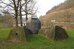 | 3 Räume - 3 Flüsse von ManfreDu Schu auf dem Doktorwerder in Hann. Münden, im Hintergrund die Weser am Zusammenfluss von Werra und Fulda | Eigenes Werk | Axel Hindemith | Datei:3 Räume 3 Flüsse Hann Münden.jpg | |