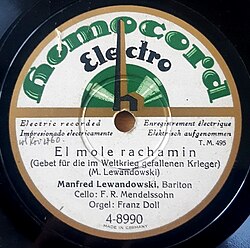 - Kol nidrei (Louis Lewandowski) Manfred Lewandowski, Bariton. Odéon AA 53 101 / O-6271 (Matrix number xxBo 8695), recorded 1925/26