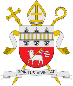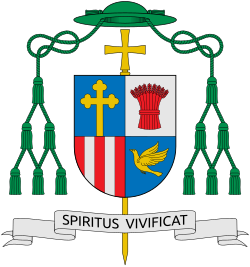 | Coat of arms of Manfred Scheuer, bishop of Innsbruck, Austria (2003 - 2015), bishop of Linz, Austria (2015 - ). Version used in Linz. Original drawing: https://www.dioezese-linz.at/bischof-scheuer/wappen designed by Studio of Erika und Georg Watzenegger. External elements and diocesan part by SajoR Garb by Juergenk59 Dove by Etxeko | Eigenes Werk | GiMa38 | Datei:Coat of arms of Manfred Scheuer2.svg | |