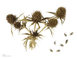 | Feld-Mannstreu , früchte und samen | Eigenes Werk | Roger Culos | Datei:Eryngium campestre MHNT.BOT.2007.40.36.jpg | |