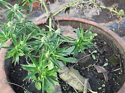 | Herb,leaves green,edged by thorny teeth,flowers cone like heads,whitish. | Eigenes Werk | Yercaud-elango | Datei:Eryngium foetidum-yercaud-salem-India.JPG |