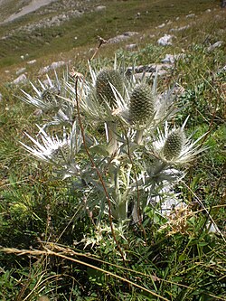 | Eryngium amethystinum near the Bosnia & Montenegro border; Montenegro, Boričje (43°8'3"N, 18°54'59"E) - Pivska Planina, DurmitorMountains | Eigenes Werk | Jacek Nowak | Datei:Bosnia-2008.09.02.285.jpg | |