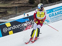 | FIS Alpine Skiing World Cup on the Avet slope in Soldeu, Grandvalira, 19 March 2023 – Men's Slalom, 1st run Manuel Feller (AUT) after the finish | Eigenes Werk | Krzysztof Golik | Datei:Manuel Feller Grandvalira 2023 SL 1st run (8).jpg | |
