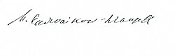 | Margarete von Wrangell Signatur 1929 Unterschrift zu einer autobiographischen Skizze in Führende Frauen Europas , 2 Bände. München 1928 und 1930 | de:Elga Kern (Hrsg.): Führende Frauen Europas , München 1999 | Autograph | Datei:Margarete von Wrangell Signatur 1929.jpg |