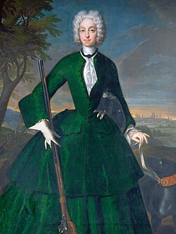 Electoral princess Amalia Maria Josepha of Bavaria (1701-1756) with a Berger de Beauce | Der ursprünglich hochladende Benutzer war Caro1409 in der Wikipedia auf Deutsch | Franz Joseph Winder | Datei:Maria Amalie von Bayern im Jagdkostüm.jpg |