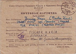 - ↑ Maria Fischer: Erstes Schreiben an Karl Fischer in der UdSSR, 26. April 1955; Original aus Privatbesitz 2022 an das Dokumentationsarchiv des österreichischen Widerstandes übergeben.