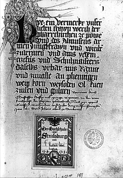 | Title leaf of the tithes register of the Bozen parish church from 1453-60 | Eigenes Werk | Bartleby08 | Datei:1453 fol96.jpg | |