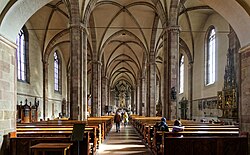 Großteils verloren ist der ehemals bedeutende Handschriftenbestand der Pfarrkirche, der laut Inventaren des späten 15. Jahrhunderts beinahe 40 liturgische Handschriften und Texte der Heiligen Schrift umfasste.[33] Der umfangreiche Buchbestand mit über 10.000 Werken des 15. bis 19. Jahrhunderts hat sich hingegen erhalten.[34] Zahlreiche Frühdrucke des Bestandes gehen auf den bayerischen Humanisten Erasmus Fend (Fendt, Vendius) zurück.[35]