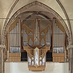 Die Hauptorgel, auch St.-Gregorius-Orgel genannt, wurde 1964 erbaut und 2019 rundum erneuert. Das Schleifladen-Instrument hat 59 (ursprünglich 41) Register auf vier (urspr. drei) Manualen und Pedal. Die Spiel- und Registertrakturen sind mechanisch.[28]