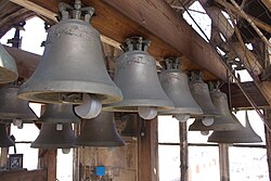 Im oberen Hexagon des Pfarrturms hängt ein Glockenspiel mit 25 Glocken, gegossen ebenfalls von Grassmayr. Es wurde im Jahr 2010 installiert und erklingt seitdem samstags und sonntags jeweils um 11.00 Uhr nach dem Stundenschlag.[30]