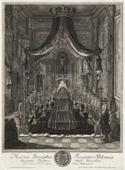 | 1 Bl. Katafalk, bez: Maria Iosepha Regina Poloniae Saxoniae Electrix obijt Dresdae ... Anno 1757. Step. Torelli ... pinx. Laur. Zucchi Sculp. et Excu. Dresdae ... | https://www.europeana.eu/portal/es/record/2064108/Museu_ProvidedCHO_KunstbibliothekStaatliche_Museen_zu_Berlin_916954.html | Stefano Torelli / Lorenzo Zucchi | Datei:Zucchi after Torelli - Queen Maria Josepha's catafalque.png |