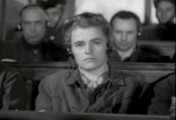 | Maria Mandl (1912-1948), Auschwitz Trial Kraków - "The Trial of Forty German Butchers of Auschwitz Camp," November 24-26, 1947 | National Archives and Records Administration (NARA), 200 MTT 1479 J Steven Spielberg Film and Video Archive at USHMM File Num 1467 | Director: Jean Pages, Producer: The March of Time, Ltd. | Datei:Maria Mandl 1947.tiff |