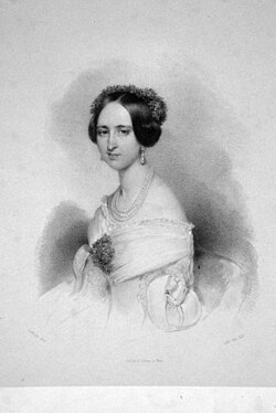 | Maria Theresia von Österreich-Este , Lithographie von Franz Eybl nach einem Gemälde von Moritz Daffinger, 1845 | Eigenes Foto einer Originallithographie der ÖNB (Wien) | Franz Eybl | Datei:Maria Theresia von Österreich-Este Franz Eybl.jpg |
