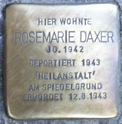 | Stolperstein für Rosemarie Daxer | Selbst fotografiert | Luckyprof | Datei:Rosemarie Daxer.png |