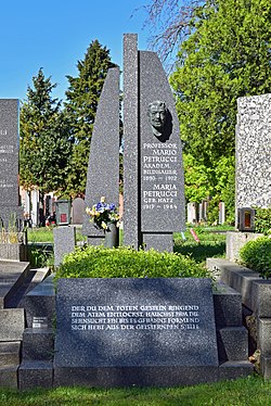 Ehrenhalber gewidmetes Grab von Mario Petrucci auf dem Wiener Zentralfriedhof . Dieses Bild zeigt das in Österreich unter der Nummer 128657 denkmalgeschützte Objekt. ( Commons , de , Wikidata ) | Eigenes Werk | Haeferl | Datei:Wiener Zentralfriedhof - Gruppe 13 B - Mario Petrucci.jpg |
