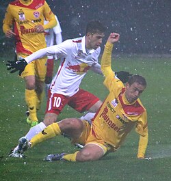 | league match Austria 2nd league | Eigenes Werk | Werner100359 | Datei:FC Liefering versus Kapfenberger SV (26. April 2016) 05.JPG | |