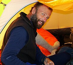 | Markus Kronthaler, fotografiert von Gerald Zenz: „Hallo Thomas Kraft! Das Foto mit Markus im Zelt wurde von mir im Lager 1 am Nanga Parbat 2004 aufgenommen. Gerne gebe ich die Zustimmung zur Veröffentlichung dieses Bildes auf der Wikipedia-Seite. Liebe Grüße, Gerald“ | Photographer Gerald Zenz | Gerald Zenz | Datei:Markus Kronthaler2.JPG | |