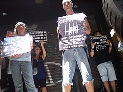 | Act against the Austrian ARA jailing. 2008. Spain. | originally posted to Flickr as Acto en motivo de la detención de nustros compañeros de Austria. | Asociación Animalista Libera! | Datei:Libera Balluch 1.jpg | |