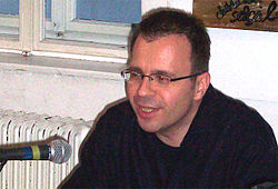 | This photo of the Austrian writer Martin Dragosits has been taken by myself with my private camera at the public reading in the Amerlinghaus in Vienna, at the presentation of the new books of publisher Arovell, on May 21, 2010. | Eigenes Werk | Klaus Ebner | Datei:Martin Dragosits.jpg |