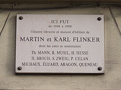 | Gedenktafel für Martin und Karl Flinker, 68 Quai des Orfèvres in Paris (1. Arrondissement) | Eigenes Werk | Reinhardhauke | Datei:Paris 1er 68 Quai des Orfèvres Martin Karl Flinker 403.JPG |
