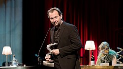 | Österreichischer Filmpreis 2017 : Martin Gschlacht , ausgezeichnet für die beste Kamera ( Stille Reserven ); Festsaal des Rathauses in Wien , Österreich . | Eigenes Werk | Manfred Werner (Tsui) | Datei:Österreichischer Filmpreis 2017 Preisverleihung39 Stille Reserven Martin Gschlacht.jpg |