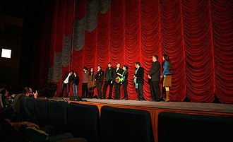| Shirin Neshat und Shoja Azari mit Martin Gschlacht (Kamera), Katharina Wöppermann (Szenenbild), Thomas Oláh (Kostümbild) und weiteren Mitgliedern des Filmteams bei der Vorführung ihres Filmes Zanan bedun-e mardan im Wiener Gartenbaukino , Viennale 2009. | Eigenes Werk | Manfred Werner - Tsui | Datei:Shirin Neshat, Shoja Azari and team, Viennale 2009.jpg | |