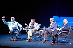 | Literarisches Gipfeltreffen: Gruppe 47 – sechzig Jahre danach Günter Grass, Joachim Kaiser und Martin Walser im Gespräch mit Wolfgang Herles 15. Juni 2007, 20 Uhr auf dem Blauen Sofa im Berliner Ensemble | BSB 2007: Gruppe 47. Sechzig Jahre danach Uploaded by Magiers | Blaues Sofa from Berlin, Deutschland | Datei:Gruppe 47 - Sechzig Jahre danach 6.jpg | |