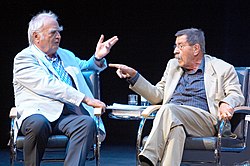 | Literarisches Gipfeltreffen: Gruppe 47 – sechzig Jahre danach Günter Grass, Joachim Kaiser und Martin Walser im Gespräch mit Wolfgang Herles 15. Juni 2007, 20 Uhr auf dem Blauen Sofa im Berliner Ensemble | BSB 2007: Gruppe 47. Sechzig Jahre danach Uploaded by Magiers | Blaues Sofa from Berlin, Deutschland | Datei:Gruppe 47 - Sechzig Jahre danach 3.jpg | |