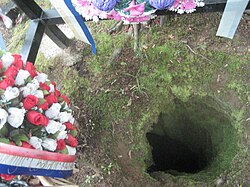 | Doppelte Karsthöhle am Zinkkreuz (Dvojno brezno pri Cink križu) im Gottscheer Hornwald, wo Opfer eines Nachkriegsmassakers liegen (Mai und Juni 1945). | Eigenes Werk | PhJ | Datei:Dvojno brezno pri Cink krizu.jpg | |