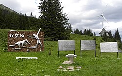 | Gedenkstätte für 200 im Jahr 1945 auf dem Todesmarsch am Präbichl vom Eisenerzer Volkssturm ermordete ungarische Juden. | Eigenes Werk | Haeferl | Datei:Eisenerz - Gedenkstätte auf dem Präbichl.jpg | |
