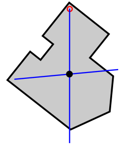 | Step 3 to determine the en:center of gravity in an arbitrary 2D shape. | Originally a png with the same name. | Satyakamk . orginal png author BAxelrod | Datei:Center gravity 2.svg | |