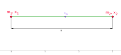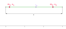 Massenschwerpunkt zweier Punktmassen auf einem Stab