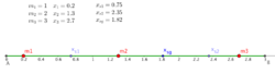 Massenschwerpunkt mehrerer Punktmassen auf einem Stab