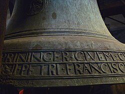 | Namenszug des Glockengießers Mathias Prininger auf der Glocke der Piaristenkirche Krems | Eigenes Werk | Uoaei1 | Datei:Piaristenglocke Prininger-Signatur.jpg |