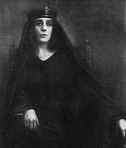 | Rollenporträt zum Artikel Die Berliner Bühnen im vierten Kriegswinter (Autor: Julius Keller). Bildunterschrift: "Mathilde Sussin als „Isabella“ in „Braut von Messina“ im Königlichen Schauspielhaus. (Phot. Becker & Maaß.)" | Sport im Bild, No. 6, magazine from 8 February 1918, page 69. | Becker & Maass / Marie Boehm | Datei:Mathilde Sussin (Isabella in Die Braut von Messina) by Becker & Maass in 1918.jpg |