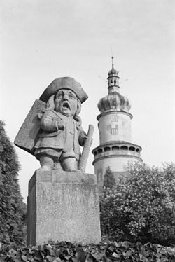 - ↑ Laut Auskunft des Verwalters des Depots von Schloss Duchcov Ladislav Nepožitek (abgerufen am 31. Oktober 2019). Bis 1985 stand die Skulptur in einer Nische der Stirnwand der Terrassentreppe.