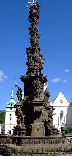 | Matthias Bernhard Braun : Pestsäule mit der Heiligen Dreifaltigkeit in Teplice . Im Hintergrund links: Dekanatskirche Johannes des Täufers, rechts die Schlosskirche. Aufnahme : 30. Juni 2006 Url : http://www.Hans-Weingartz.de | Die ursprüngliche Dateibeschreibungsseite war hier . Alle folgenden Benutzernamen beziehen sich auf de.wikipedia. | Hans Weingartz= Leonce49 | Datei:Teplice CZ Holy Trinity column TEPPEST.jpg |