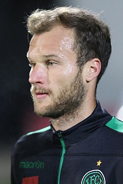 | Fußballmeisterschaftsspiel Erste Liga 2017-18 - SC Wiener Neustadt (weiße Trikots) vs. FC Wacker Innsbruck (schwarz-grüne Trikots) 0:1. – Das Bild zeigt Matthias Maak (FC Wacker Innsbruck). | Eigenes Werk | Steindy ( Diskussion ) 10:39, 29 May 2018 (UTC) | Datei:SC Wiener Neustadt vs. FC Wacker Innsbruck 2017-11-03 (041).jpg | |