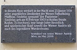 - ↑ knerger.de: Das Grab von Matthias Sindelar