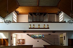 II/P | 36 | Chororgel im historischen Prospekt, elektropneumatische Traktur, nicht erhalten, seit 2005 Orgel von Orgelbau Kuhn[12] |